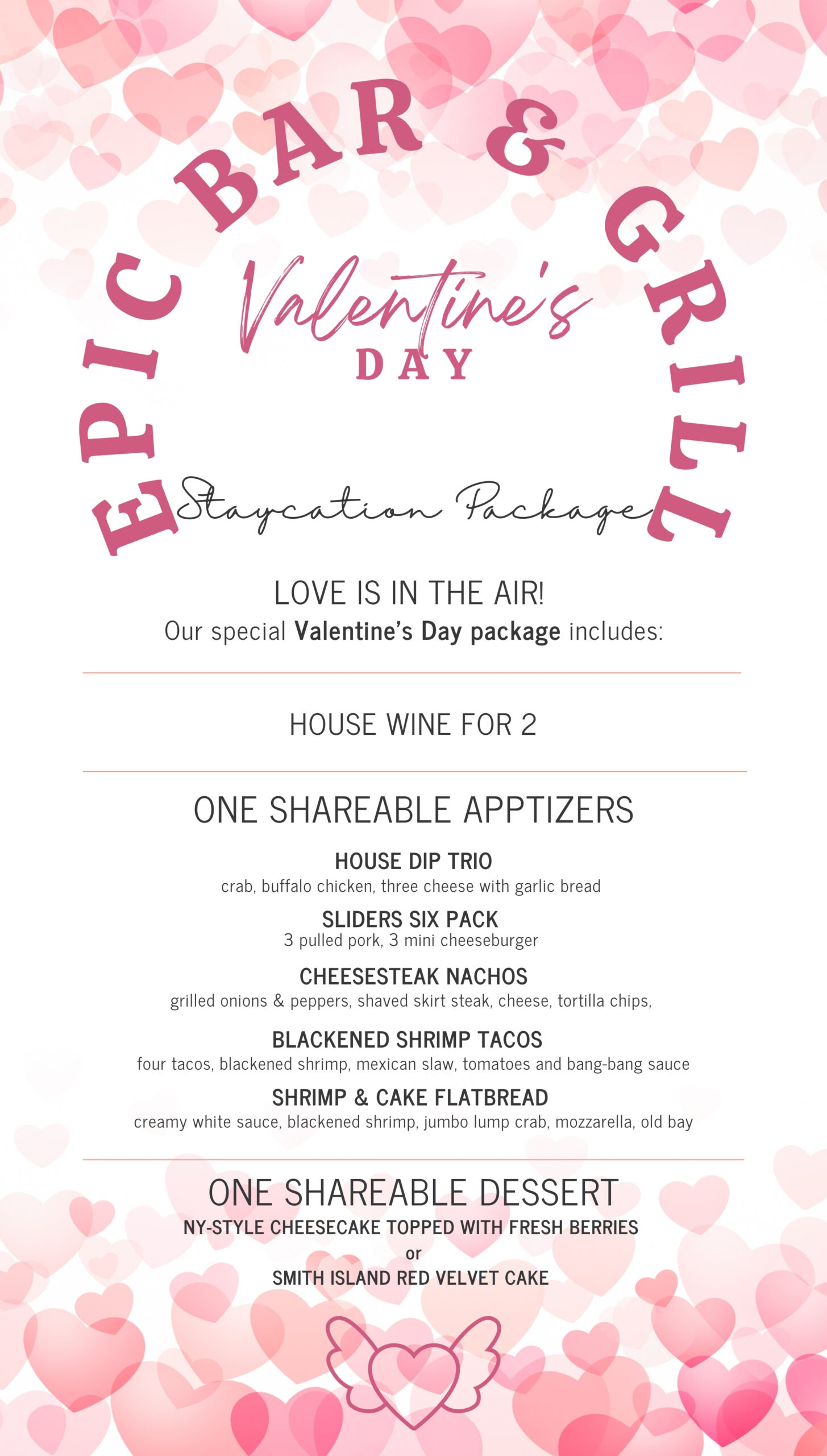 Valentine’s Inspired 3 Course Dinner for Two at the Epic Bar and Grille